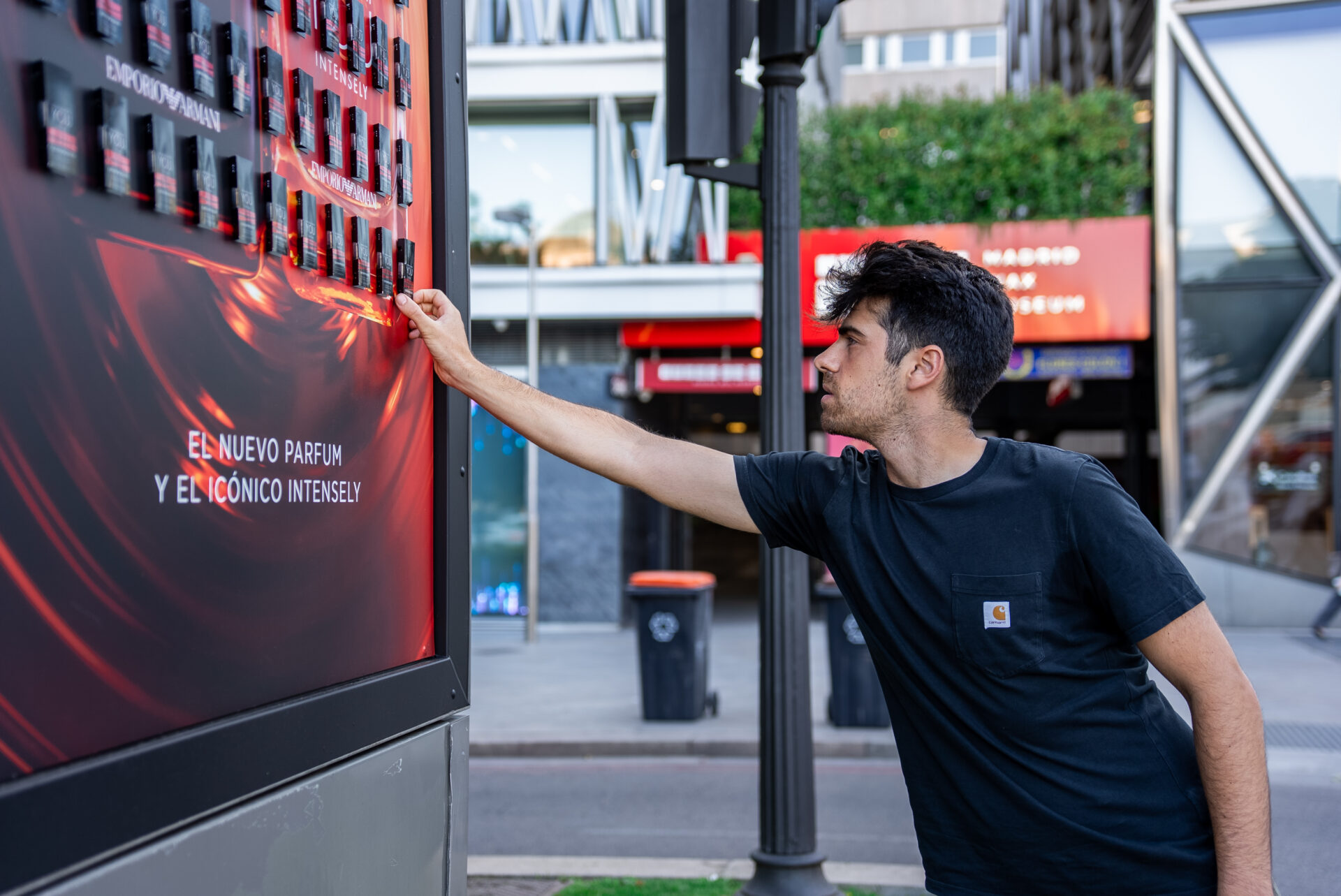 MadridPara presentar su nueva fragancia masculina STRONGER WITH YOU, Emporio Armani llevó el perfume directamente a la calle mediante una activación sensorial que permitió al público descubrir la fragancia en pleno entorno urbano.